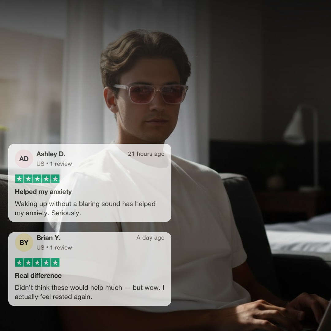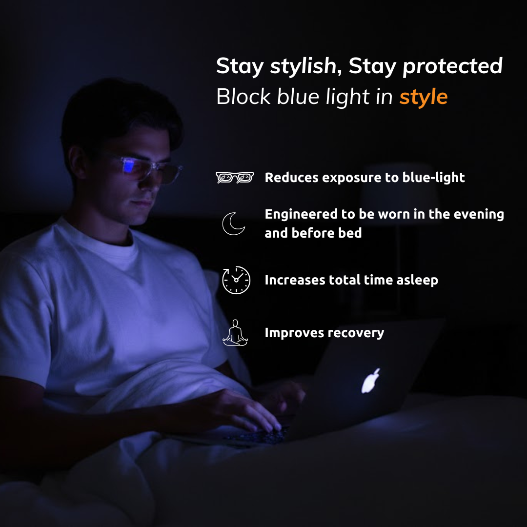 Blue light from screens in the evening may interfere with your natural sleep rhythm, making it harder to wind down. Deep Sleep glasses are designed to filter out this disruptive light, helping your body prepare for rest more naturally. The result: an easier time falling asleep and smoother mornings.
